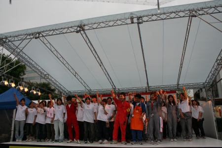 | 平成19年7月8日(日)、高知市の中央公園にて「2007こじゃんとよっちょれ祭」が開催されました。この祭りは若者による地域活性化と地域との交流を目的として、高知県内にある大学、高知大学、高知女子大学、高知工科大学の三大学の学生が運営しています。 今年のテーマは『縁〜人でつなげる笑顔の輪〜』。人と人とのつながりを大切にすることや、この祭りで色々な人に出会うということが込められています。 目玉イベントとして約1200人分に相当する「地球33番地焼」(3.3メートルものお好み焼き)を祭り中に焼き上げ、来祭者の皆さんにふるまいました。 それでは、当日の様子をご覧下さい。 |